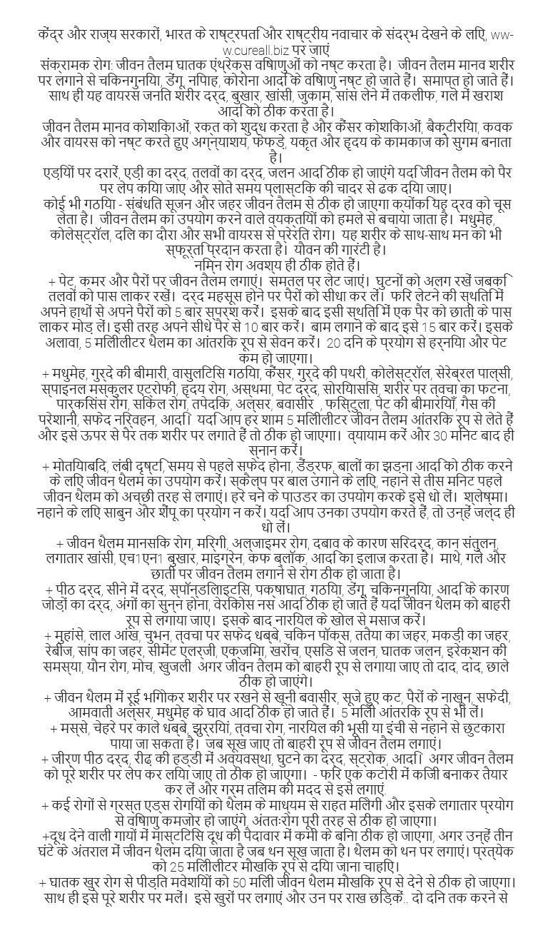 it is essential for the cure from head ache,cold,phlegm,earache,backplane,bone-tear$wear,pimples,prickly heat, Arthritis ulcer, Blood Arthritis, rheumatic sore feet, on -healing wound, Bruised wound, Psoriasis, Melasma, Itch, Crysipelas, Stiffening of hands and legs, Smallvart, Wart, Scurf, Tooth Ache, Bruise, Sprain, Burns, Blackheads, Neck pain itching ,Ringworm, etc.....
